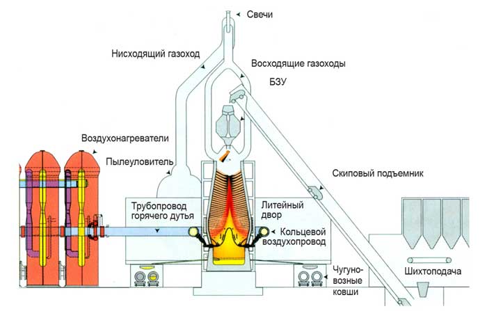 В доменной печи можно выделить несколько основных зон, в каждой из которых протекают свои специфические процессы: